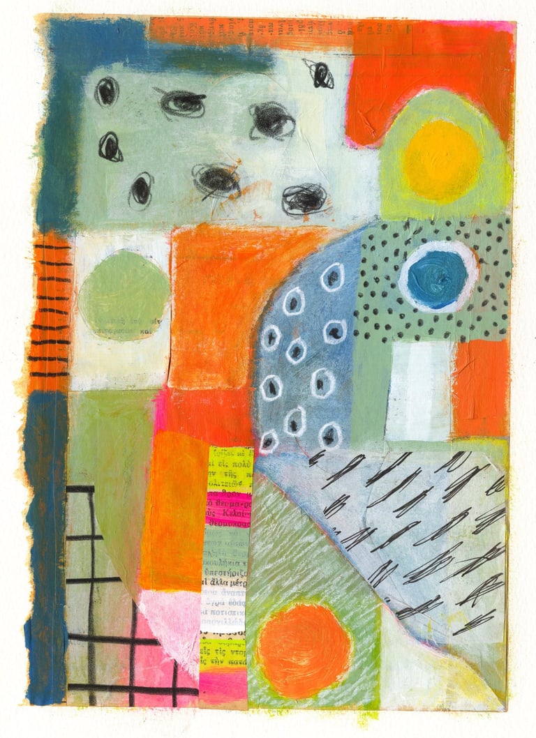 Mixed media - newspaper, tissue paper, acrylic paint on watercolour paper 27x19cm Unframed