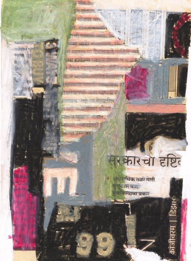 Mixed media - newspaper, tissue paper, acrylic paint on postcard 7x5" Unframed